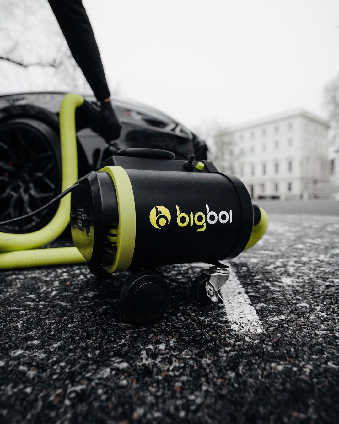 The Bigboi BlowR Pro is the most powerful unit of its type in the industry, featuring two 900-watt motors (subject to your region) and a maximum output of 1800 watts for the Australian model. These motors use heated, filtered air to chase water off paintwork, metal, glass, and chrome. The blast of air forces trapped water out from behind badges, head and taillight surrounds, mirror housings, and other hard-to-reach areas. The BlowR Pro is supplied with two interchangeable nozzles to ensure air can be directed along channels and grooves. The Bigboi Temperature Technology (BTT) function ensures the BlowR Pro uses air heated up to 36 degrees Fahrenheit above ambient air temperature for optimum drying and evaporation. Select from four wind speeds depending on the task at hand.