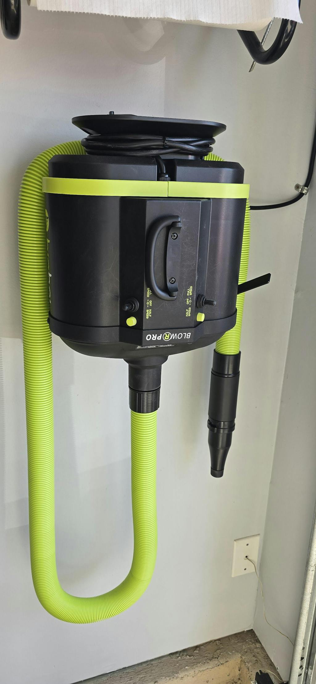 This wall mount base has significantly enhanced my drying process, transforming it into a more efficient and enjoyable experience. The stationary dryer, coupled with the maneuverability of the hose, streamlines operations considerably. My setup will be fully optimized once the 9-meter hose is acquired. I regret not having implemented this solution sooner.
