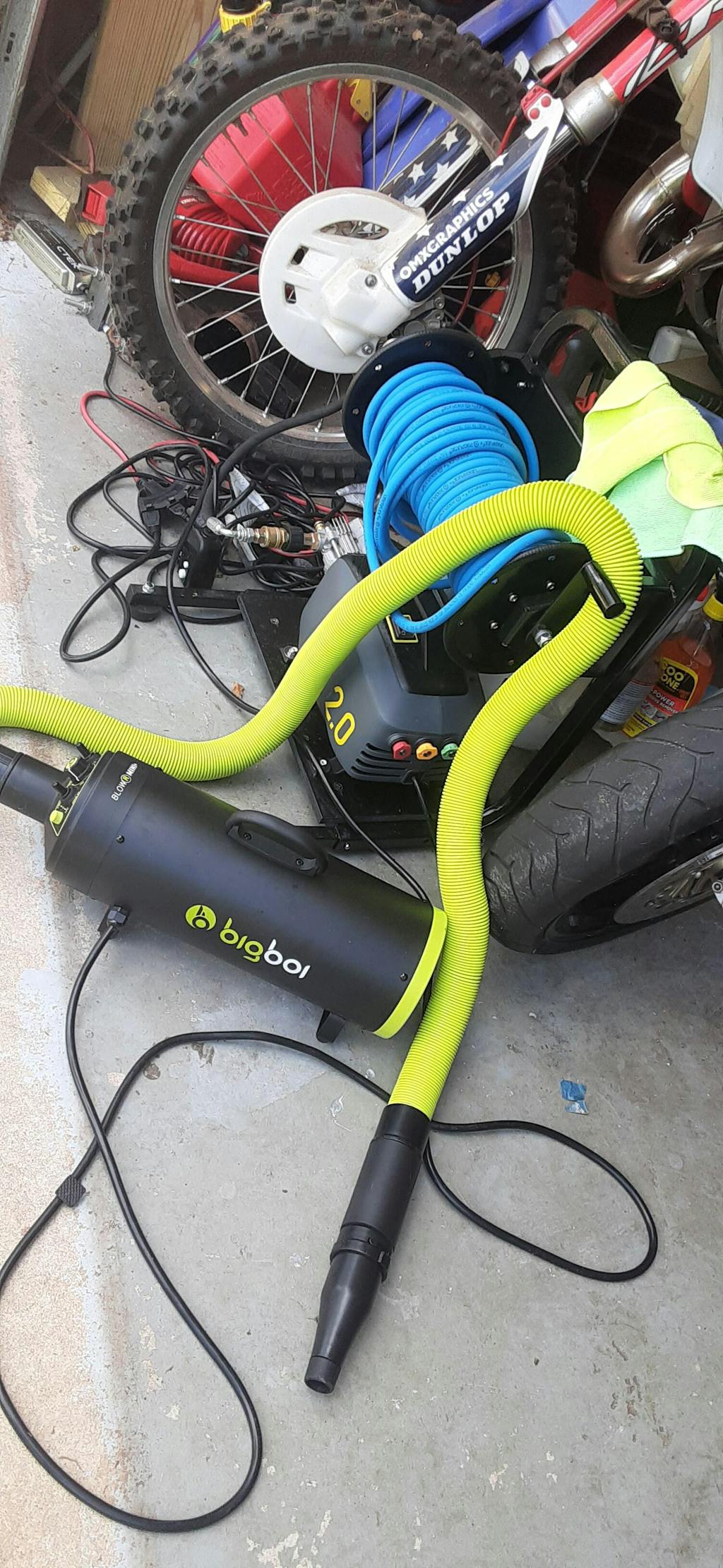 The bigboi BlowR Mini+ is highly effective at preventing water spots because it uses heated, filtered air to dry the vehicle quickly and thoroughly. This reduces the chance for water to evaporate and leave spots behind.
